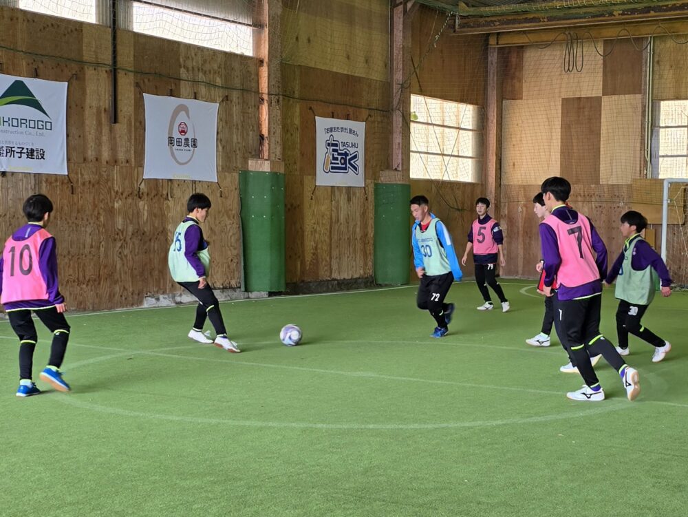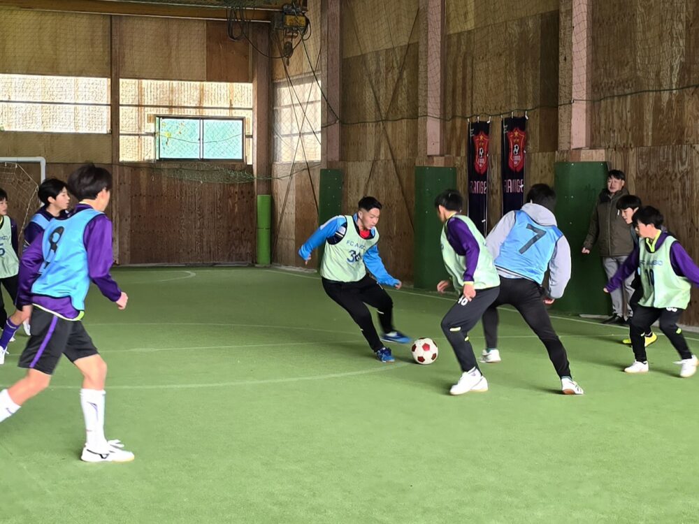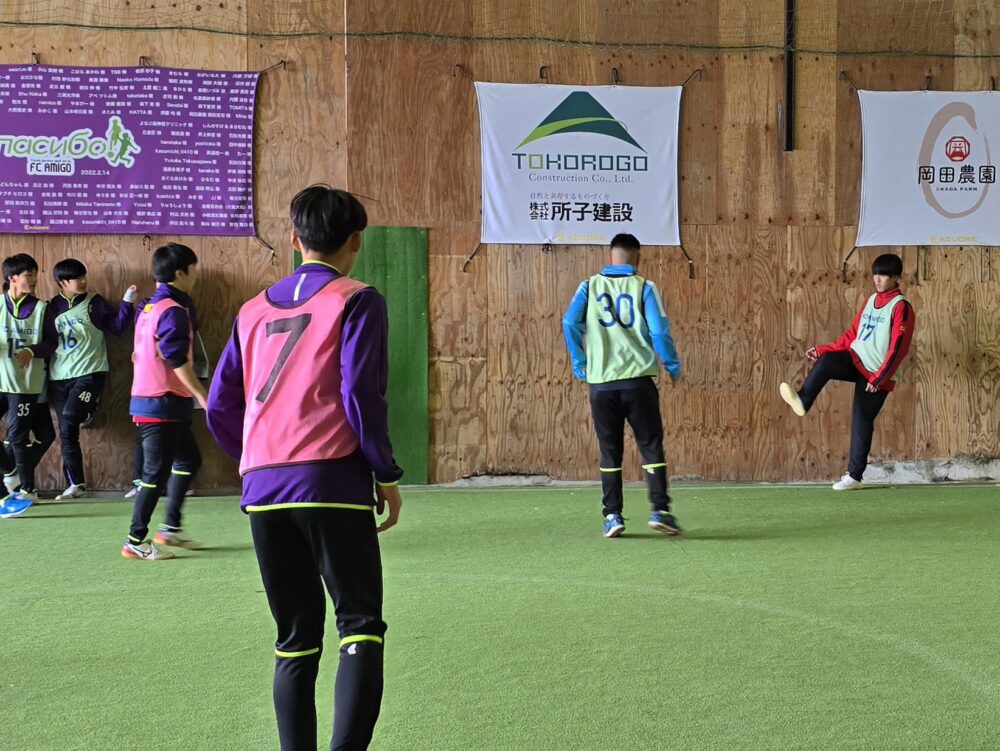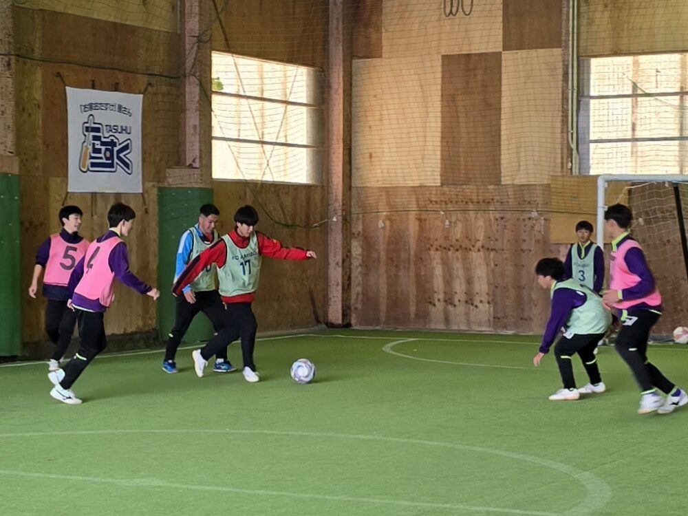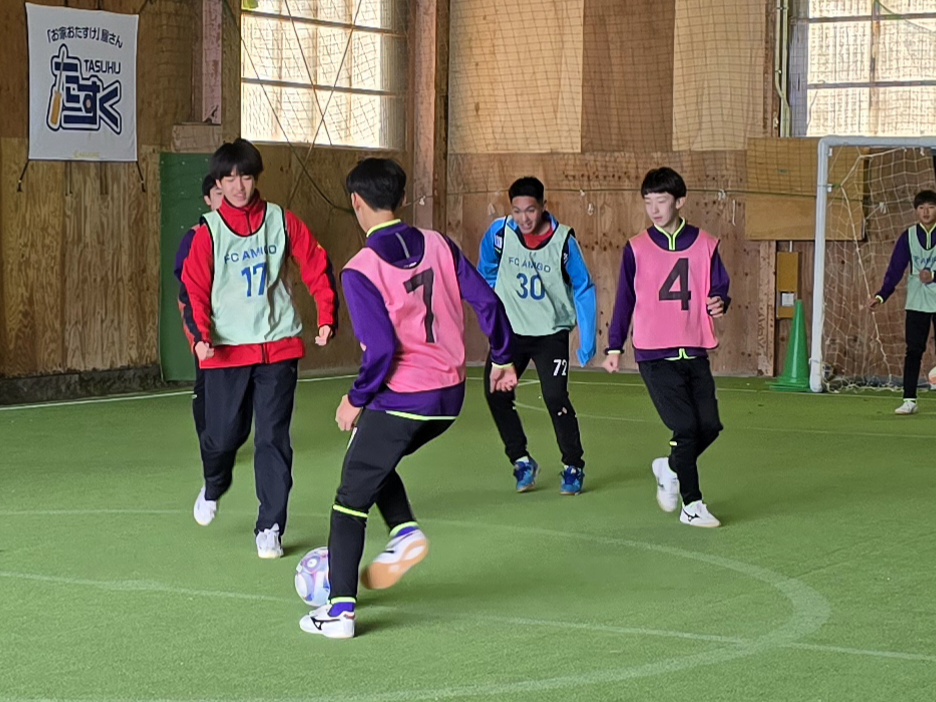 アミーゴジュニアユースの初蹴りはOBと一緒に、フットサル大会をしました。 OBの是枝くん(倉敷高校2年)がとてもサッカー上手くなってました! 卒業してから初めて来てくれた田中くん(米子西2年)のプレーは相変わらず上手いのですが、たまに面白いプレーもあって相変わらずでした。 森下くん(相生学院高校2年)は、改めて上手いと感じました。 先輩たちと一緒に楽しくプレー出来て、良い刺激をうけました。 今年もチーム一丸となって頑張ります!