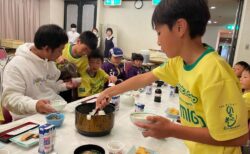 アミーゴ vs ルゼルやわたSC(兵庫) 前半 1 - 3 後半 2 - 3 合計 3 - 6 アミーゴ得点者:安藤2、下山 アミーゴ vs VANOS上郡(兵庫) 前半 0 - 2 後半 1 - 2 合計 1 - 4 アミーゴ得点者:寺澤 アミーゴ vs 大社スフィーダ(島根) 前半 1 - 0 後半 1 - 2 合計 2 - 2 アミーゴ得点者:安藤2 アミーゴ vs 大津茂SC(兵庫) 前半 - 後半 - 合計 - 遠征二日目は子どもたちの早起きからのスタートでした。 5時前に起きた子供たちが指導者を起こしに来て、出発の準備と部屋の掃除と片付けをしてから6時から散歩。 7時からの朝食も全員が残さず食べて予定通り8時に出発…